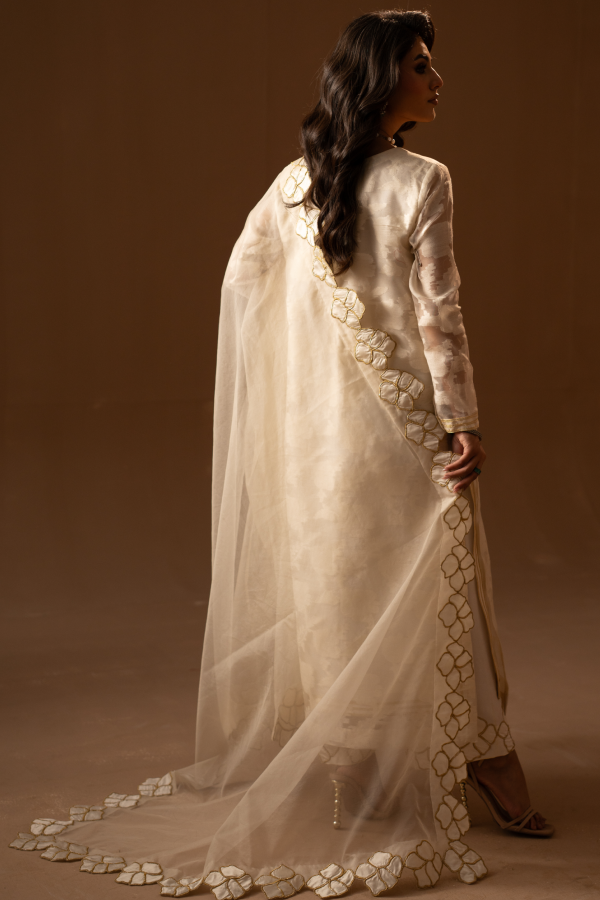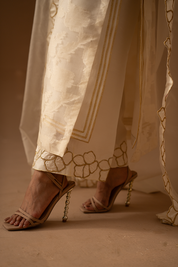 Elevate your semi-formal look with this attire, crafted on a luxurious silk base with hand-embellished detailing. Its structured yet flowy silhouette is perfect for both daytime gatherings and evening festivities. Minimal sparkle with festive hues makes it a chic and versatile outfit for any special occasion.a